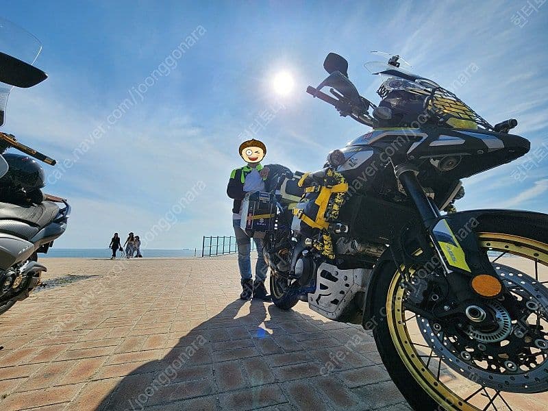 엔진가드 양쪽에 가방 달려 있습니다.