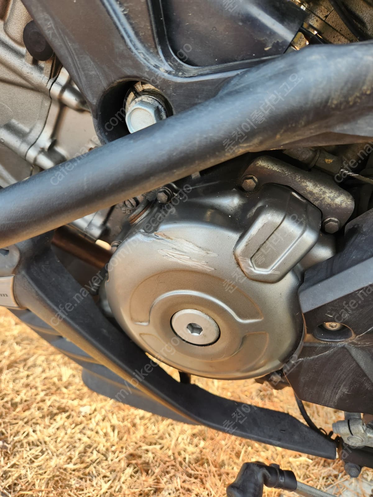 프론트 타이어 휠이 휘었습니다. 전주인이 슬립하면서 앞 바퀴 휠이 조금 휘었습니다. 그래서 주행 할 때는 모르는데, 양손을 놓으면 한쪽으로 쏠림 현상이 일어납니다. 전주인이 주행에는 상관 없다하여 믿고 샀는데, 1년 동안 2.5만km 타면서 문제 전혀 없었습니다. 처음에 센터에 수리하러 갔더니 센터사장님도 일단 타보고 많이 불편하면 고치라고 해서 그냥 탔는데, 문제 없었습니다.