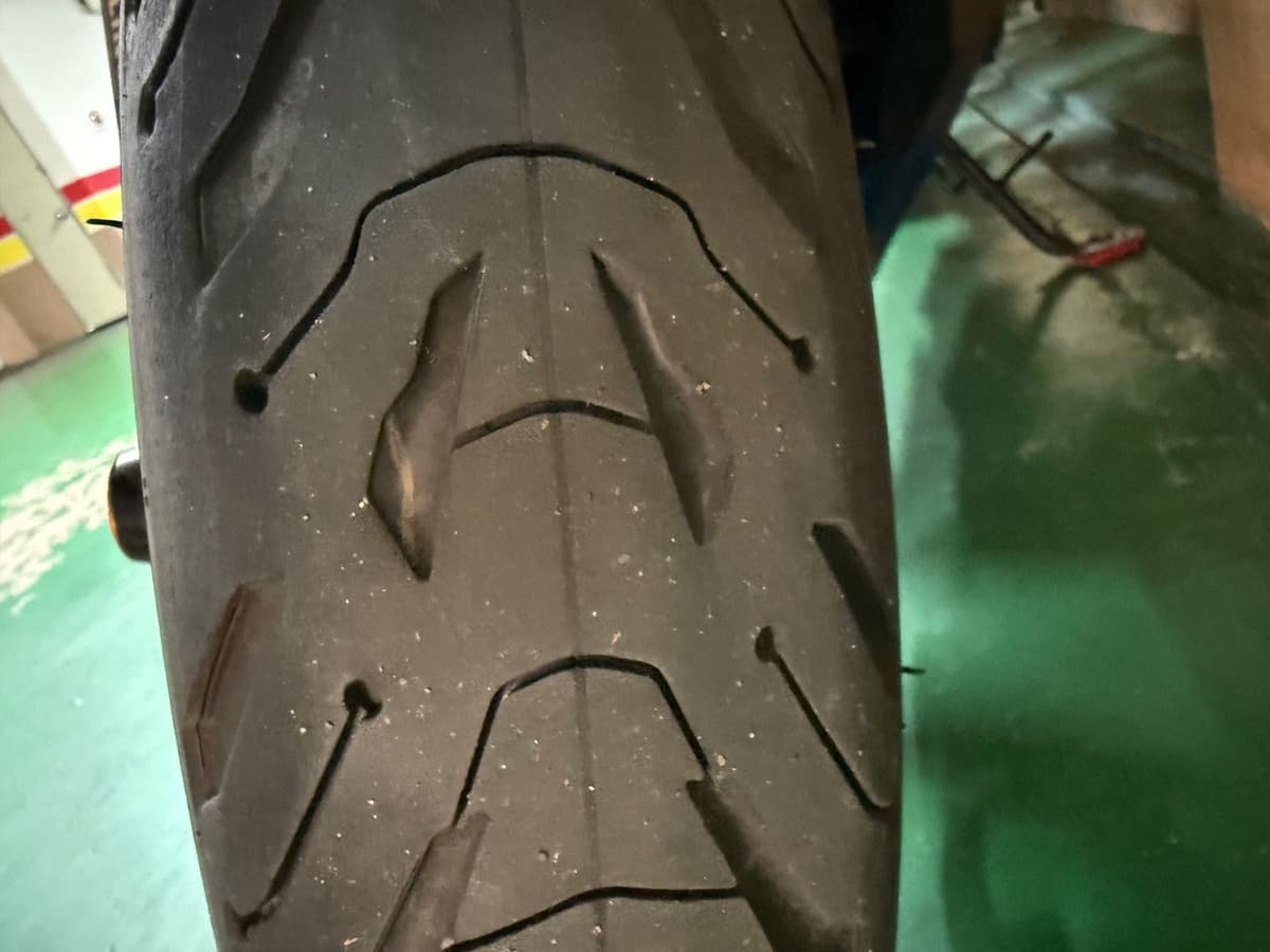 앞뒤타이어 미쉐린 로드6이고요 앞에는 60프로 이상 남았고 뒤에는 타이어 교환후 1000키로 주행 했습니다. 새 타이어라고 보셔도 무방 합니다