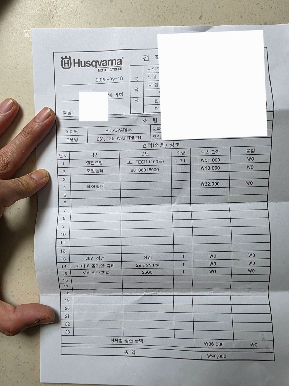 엔진오일 교체 완료