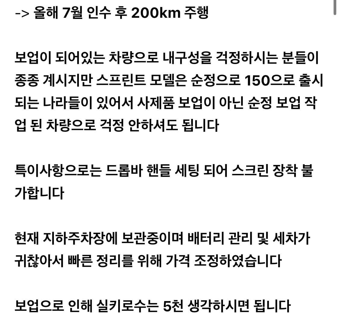 개인 거래에 필요한 정보 이외의 광고성, 음란성 코멘트 작성 시 사전 예고 없이 등록 상품이 삭제될 수 있습니다.