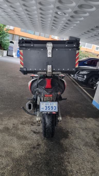 ▶ 커스텀 내역 (튜닝 이력):-절샥 브레이크레버 아크라포빅 기비 롱 스크린 열선그립 대구공돌 금색 짐 캐리어 알루미늄 탑박스75l