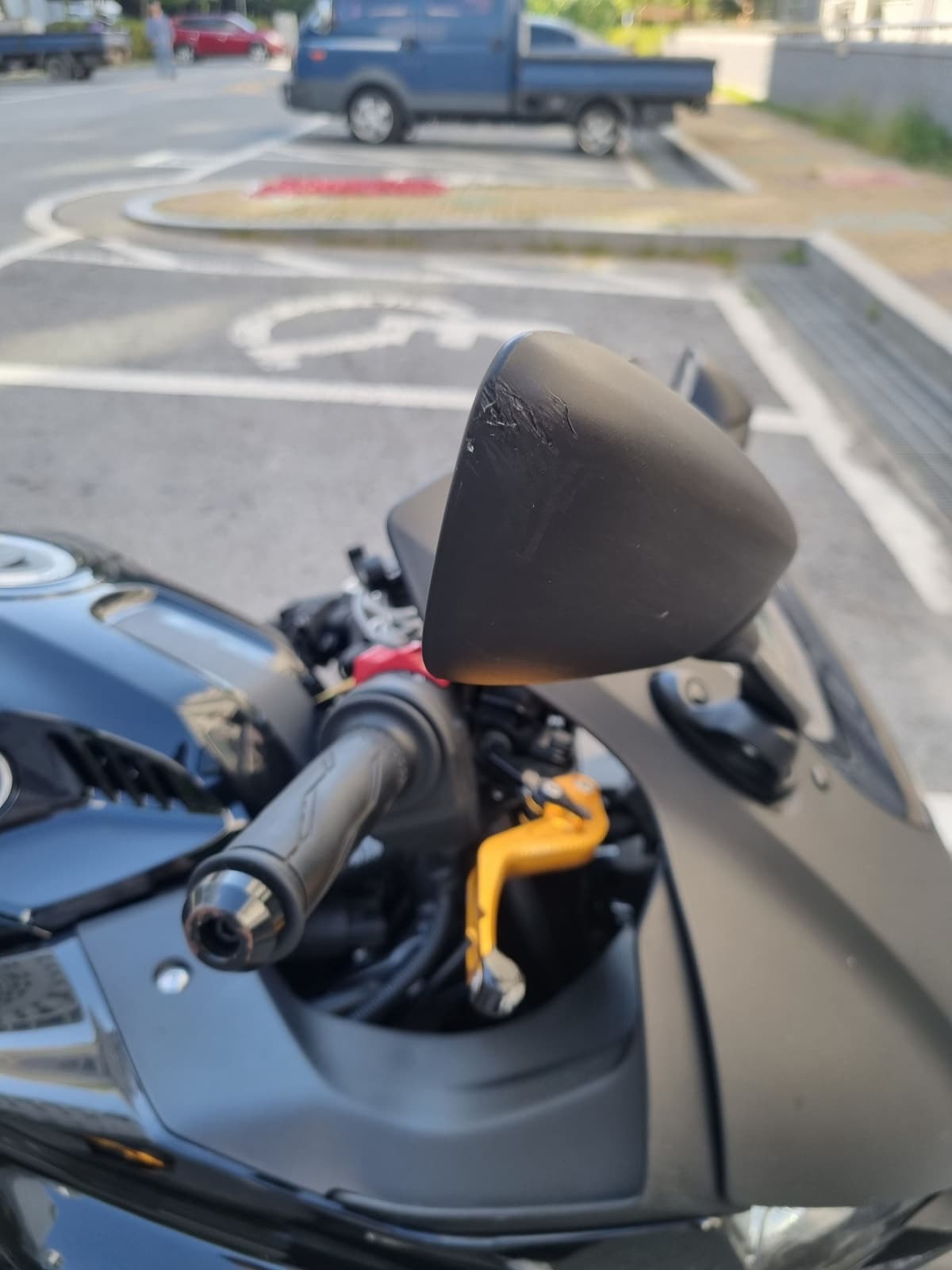 - 우꿍으로인해 우측 브레이크레버 끝쪽 바엔드 사이드미러 끝부분 기스 조금 있구요, 프레임슬라이더랑 깜빡이등 끝에 상처좀 났어요, 머플러도 파이프부분 살짝 기스있구요, 엄청 예민하신분 아니면 별 티도 안납니다
