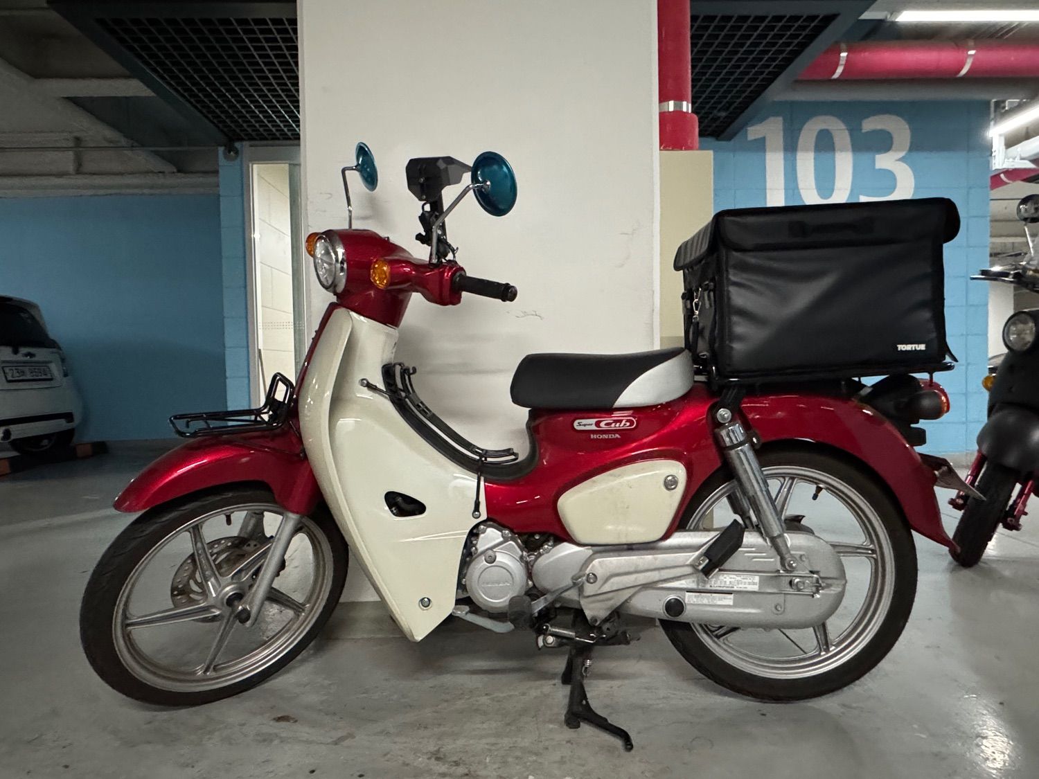 ▶ 커스텀 내역 (튜닝 이력):Yss 쇼바, 도투 배달가방, 핸드폰 자석 거치대